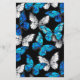 Realistic, blue and white butterflies seamless pattern on black background.