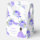 This Quinceanera favor box features faux glitter purple floral flowers and a beautiful princess with dark skin and an elegant dress. This is perfect for a Quinceanera birthday party.