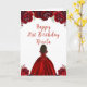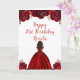 Dark Skin Princess Red Floral Birthday Kort