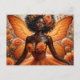 Dark-Skinned Fairy With Afro - Orange Floral Vykort
