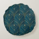 Dark teal floral damask pattern rund kudde