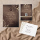 This elegant dark wood wedding invitation features a rich woodgrain background accented with delicate gold floral line art and a refined custom monogram. Paired with a coordinated photo RSVP card, this set blends romantic vintage style with modern functionality.