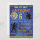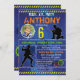 Party inspirerades av en roligt blå grunge för ditt barns nästa Nerf Krig. Den här inbjudan har plats för ett foto av ditt barn. Med flygande mördare och soldater med sprängkapslar. Den här fronten och inbjudan är säkert imponerande för dina gäster. www.invitecentral.com