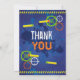 Ett roligt "Nerf" Wars inspirerat tackkort för ditt barns nästa dart krig fest! Med flygande pilar och en soldat som håller en blaster. Fram- och baksidan av detta kort kommer säkert att imponera på dina gäster. Matchande inbjudan finns tillgänglig i butiken. Designad av www.invitecentral.com