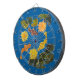 Fiskar som simmar mellan grönt lilja dynor med gult blommar. Gult, orange och brun koi. Bakgrunden är mörk blått. Från silke-målning från Susan Lilly. (Lilikai)