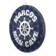 Dartboard för grotta för man för beställnings- noveltydesign nautisk. Den roliga maritima temapilen stiger ombord design med personlignamn, och den gammala frakten rullar logotypen. Den kalla väggdekorleken för verklig manar mangrottan, kabinen, fiskrestaurangen, puben, puben, dormrum, sovrummet, kök, middagen, cafen, kontor, shoppar, lagrar, fartyget, frakten, däck, graden, bröllopsfesten, affären, företaget Etc. Personalizable med efternamn eller det humoristiska citationstecknet. Den enorma födelsedaggåvaidén för vänner, familjen, sjömannen, fartygkaptenen, skepparen, fisheren, ungar, pappan, unclen, morfadern, brodern, maken Etc. uppsätta som mål med bullseyen. Marinblåa och vitfärger.