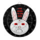Den här fantastisk-dammluckan har ledsen ansikte på en vit kanin. Den här kaninen har en stor frossa på ansikte eftersom det är en labbkanin som har testat kosmetika på den. Ögats vita är röda och svullna. Utformningen har skapats för att uppmärksamma det onödiga lidande som testningen av kosmetika på djur orsakar. Den fetstilta röda texten lyder: "Stoppa djurförsök nu!"