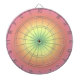 Koncentriska cirklar i regnbåge färg. Från mitten - grönt, gult, orange, rött, rosa.