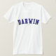 Darwin! Är ditt namn Darwin? Eller har du en make, en pojkvän, en male familjemedlem eller en manlig vännen namngav Darwin? Om så, är denna "baner" skjorta exakt gåvan som du söker efter! Designen presenterar "Darwin" i välvd marinbokstäver över bröstkorgen i klassikerhögskolastilsorten.