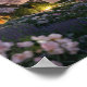 Dieses Poster zeigt ein atemberaubendes Traumhaus, umgeben von einem üppigen Garten voller farbenfroher Blumen und Pflanzen.