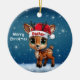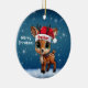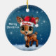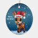 Dasher! Celebrate the holiday season with this festive round ceramic red ornament featuring an endearing woodland forest animal cartoon graphic of a cute baby reindeer wearing a Santa hat, and Merry Christmas written in white. Perfect deer with antlers for decorating your tree or as a thoughtful gift, this whimsical doe decor makes a cherished keepsake for years to come. Customize by changing the text, the font, the font color, or remove the text. You can even transfer this design onto other products. Enjoy this design your way! Check out ForestBabies Xmas Deer Collection for matching decorations. 🎄🩌 Dimensions: Diameter: 2.87". Thickness: 0.156". Weight: 1.4 oz. Made of white porcelain. Full-color, full-bleed printing. Printing on both sides. Thread does not come attached/tied.