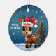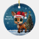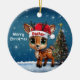 Dasher! Celebrate the holiday season with this festive round ceramic red ornament featuring an endearing woodland forest animal cartoon graphic of a cute baby reindeer wearing a Santa hat, and Merry Christmas written in white. Perfect deer with antlers for decorating your tree or as a thoughtful gift, this whimsical doe decor makes a cherished keepsake for years to come. Customize by changing the text, the font, the font color, or remove the text. You can even transfer this design onto other products. Enjoy this design your way! Check out ForestBabies Xmas Deer Collection for matching decorations. 🎄🩌 Dimensions: Diameter: 2.87". Thickness: 0.156". Weight: 1.4 oz. Made of white porcelain. Full-color, full-bleed printing. Printing on both sides. Thread does not come attached/tied.