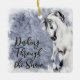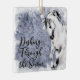 Denna Dashing Through the Snow vinter julgran ornament har en vacker grå häst galopperar genom snön. Baksidan kan anpassas med ett namn och år eller någon text som du vill lägga till.