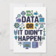 Fira dataströmmen med den här roligten och färglösa designen som innehåller den fetstilta frasen Data, annars hände det inte. Omgiven av diagram, diagram, kodningsikoner och forskningssymboler är det en lekfull men smart nod för analytiker, vetenskap och teknik. Denna utformning är en perfekt för datatekniker, forskare, programmerare och alla som värdesätter bevis och precision. Den fångar upp den geekiska charmen av ett liv som drivs av statistik och logik, skapar den både öga-fångst och meningsfull. Oavsett om det är på kontoret, på konferenser eller i vardagslivet påminner denna design alla om den ultimata regeln: inga data, inga bevis.