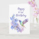 Anpassningsbar daterade 103. födelsedaghummingbirden och blåttriddarsporren blommar för de som älskar dessa fåglar, trädgårdar, blommor eller natur.