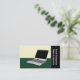 Illustration av en bärbar dator på ett skrivbord. Det här moderna och professionell affärskortet har ett utrymme på högerna för ditt företag namn i lodrät text. Utmärkt affärskort för datortekniker, försäljnings- och reparationsföretag.