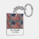 Anpassa den här nyckelkedjan med valfritt datum i namn och speciellt. Lämplig för årsdag, födelsedag, speciella evenemang och minnesmärken osv. Den har Röda, vita och blå amerikanska Flagga på en suddig bakgrund i ett mönster i sidled. Bra för vardaglig använda, för hus, bil eller någon form av nycklar.