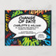 Anpassa med dina namn och detaljer för att tillkännage datumändringen för ditt speciella evenemang. Serietidningsinspirerad popkonst modern, rolig retrodesign, perfekt för bröllop, bröllopsdusch, baby shower, dop, förlovningsfester, årsdagsfiranden, examina, födelsedagsfirande och andra speciella evenemang under hela året! En cool, trendig och rolig design som sätter kraft i din dag. Designad av Thisisnotme©