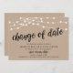 Detta är ett uppskjutet (uppskov) bröllopsannonseringskort, med kortets titel, Datumändring, i svart scriptfont, modern rustik kraft strängljus lantlig design tema.