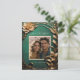 Hämta magin i din kärlek-artikel med den här nyheten Spara datumfotovykortet från "Teatrical Reverie Bröllop Collection". Lägg förlovningens foto i en ram av guldkopparmetallisk blommigt, mot en texturerad, subtilt dekorerad grönt. Med tanke på att vintagens teatrar och maskerad charm är allestädes med den här designen ett litet teatraliskt drama till ditt meddelande.