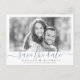 Modern manusskript "spara datumet" i dammig blå färg, med ett pars foto, enkla och elegant. Underbart fotosparande av vykort för modern bröllop och andra evenemang. Om du väljer "Klicka för att anpassa ytterligare" i avsnittet "Anpassa den här mallen" kan du ändra färg i skriptet så att det matchar fotot och justera fotots position.