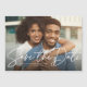 Ett fet, modernt skript "spara datumet" i vita accenter ett foto med ett vågrät. Detta magnetiska kort är ett underbart sätt att meddela din förlovning och det kommande bröllop till vänner och familj. Anpassningsbarna har gott om utrymme för bruden och brudgummen namn, plus datum, plats och annan information som du vill som en webbplats eller social avstånd krav.