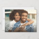 Ett fet, modernt skript "spara datumet" i vita accenter ett foto med ett vågrät. Detta magnetiska kort är ett underbart sätt att meddela din förlovning och det kommande bröllop till vänner och familj. Anpassningsbarna har gott om utrymme för bruden och brudgummen namn, plus datum, plats och annan information som du vill som en webbplats eller social avstånd krav.