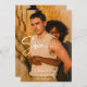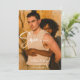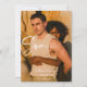 Med en kombination av serif och script typsnitt innehåller inbjudan Spara datum ett foto som paret under den vita texten. Kortets baksida har samma bild av paret (utan text).