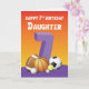 Ett kort för att hälsa på en speciell dotter som kärlek idrottsar en lycklig 7:e födelsedag. De olika typerna av bollar på framsidan skulle påminna henne om all sport hon kärlek. Insidan har ett budskap som säkert skulle tillföra henne roligt.