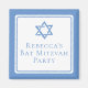 Den här ljusblå Bat mitzvah kvadratiska magneten i party har en vacker, konstnärlig stjärna av David teckning överst. Fyll i dekorn med personligen namn till vit fördel.