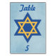 Ett kort av typen elegant bord har en blå bakgrund med bordsnumret skrivet i blått. I mitten finns en blå och guld-bild av David Star. Ställe din beställning i dag! Blå bakgrund: Michel Müller Star of David: Sonya DeHart Design http://www.sonyadehartdesign.com | http://www.sonyadehartdesign.etsy.com
