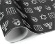 David, Hebrew Magen David, Dreidel, menorah, Torah svart och vit mönster-gåva som omsluter papper. Vit bild mönster på svart bakgrund färg. Minimalistisk, modern, enkel utformning av eleganten. Denna pappra förpackning är underbar för Hanukkah, Chanukah, pub mitzvah, bat mitzvah, shabbat och judiska Helgdagar.