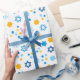 Den här pappra inslagningen är toppen söt! Den har funkyar, snöflingor och David Stars i blått och guld. Få tillräckligt för att slå in alla dina gåvor! De kommer att se fantastiska ut!