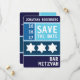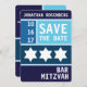 Fet färg. En ren, enkel design. Stor typ. David stjärna... visas tydligt i rad. Pub Mitzvah, som är ett modernt och unikt datum, sparar datuminbjudan med en kompletterande palett med varje avsnitt som definieras av en unik bakgrund färg. All tryckt information kan anpassas till din sons namn och händelsemedagen.. Fyll bara i fält!