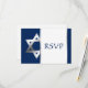 Modern navy och faux silver foil Pub Mitzvah OSA Responcard.