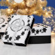 David-Helgdag Hanukkahs stjärna. Den här svarta och vita designen har "David Star". Stjärnor omger David stjärna i ovala former. Hörnen är dekorerade med löv och David Star. Denna pappra förpackning kommer till stilar i olika delar. Plocka stil och design.