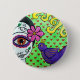 Den här knappen har en bild av en av mina målningar som heter "Queen". Min inspiration till allt mitt arbete kommer från min land (Mexiko) och i synnerhet från Dia de Muertos (day of the dead) firande. I firande minns vi våra kärlek med glädje och respekt.