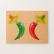 Det här pusslet i fantastisk har ett par chilier, en röd chili och en grönt chili. Båda har svart ögon och rosa munnar. Varje chili bär en sombrero-hatt som har en skalle av motsatt färg mot chili på den i firande på den mexikanska Day of the dead-festivalen, Dia De Los Muertos. Sombrero innehåller också tre blommor med alternerande röda och grönt petaler som representerar Mexikos flagga.