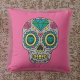 Den här spännande designen i Day of the dead stil har en skalle med en blå kristaller i grönt överst, med ro, hjärtan och blixtar i gult. Skallen ställs mot shock rosa bakgrund för ett festligt utseende.