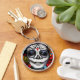 Bild av brant blommigt Day of the dead. En kvinnas ansikte, målad för Mexikanska Day of the dead, omges av rik juvelfärgade blommor. Behålla spår av nycklar medan du tar tid att lukta ro..