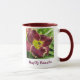 Rolig mugg med en härlig purpurfärgad daylilyplanta.