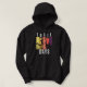 This hoodie is much better than I expected. top quality, true sizing, and really comfy. I was a bit worried that the lettering would be too dark on the navy blue hoodie, but once it arrived it was perfect. Easy to see the words, and the quality of the wording is fabulous. I will be buying more hoodies in future