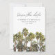 Daytona Beach WedFlorida sparar datuminbjudan. Fånga skönheten hos Daytona Beach Florida och inbjudan dina gäster i stil med det här fotot spara inbjudan till datum. Framsidan visar ett enastående foto av handflatan träd och anger perfektens tonläge för bröllopsdagen. Lägg till ett eget foto på baksidan och anpassa texten så att den blir din egen.