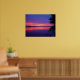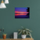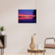 Vacker poster med ett foto från Daytona Beach, FL som visar blå himmel med tropisk orange, rött och lila solnedgång över floden med handflatan träd.