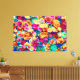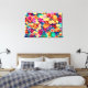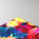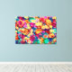 En lysande visning av ro i rosa, orange, blått, lilak och gult.