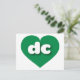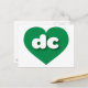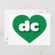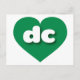 Det här vykortet har ett skarpt och dynamiskt hjärta för grönt som innehåller det feta, vita, rundade nedre fodral-brev dc, en lekande förkortning för Columbia District. Baksidan av vykortet är tom och väntar på dina handskrivna känslor eller anpassade texter.