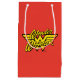 Släpp loss din inre superhjälte med den här tecknaden som inspirerat designen från DC-Tecknader. kvinnoskölden i guld skiner i den här roligten, färgfulla presentväskor som säkert kommer att ta med Amazonas prinsessa i dig! Barn, fläkt i den klassiska tecknaden bokar och vuxnor kommer att känna sig kärlek vintage till denna klassiska utformning. Perfektens tillbehör till alla superhjältar party, de här coola anpassningsbar-presentpåsarna kommer att ge födelsedagsfesten ett gigantiskt tryck!