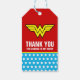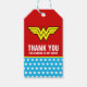 Tack gästerna för att de närvarade vid din födelsedagskalas i fantastisk med den här roligten, märkre med retro-presenter som inspirerats av stars och stripes färg-schemat för kvinnors koniska kostym. Designad av DC-Tecknader, bläddrar Diana Prince mot det levande färg och fet stil. Dina gäster i party kommer att känna sig uppskattade och ha ett roligt memorandum för att påminna dem om att du kastar en hals av party!