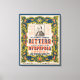 En mans porträtt i centrum för en annons för berömda Oxygenerade Bitters. Ett utbyggt dekorativt gräns med öga i centrum.