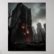 Ett sönderfallande torn, kvävt av livlösa vinstockar, brinner inifrån mot bakgrunden av en död stad. Övergivna bilar och träd i skelettet omger inferno, deras tystnad kontrasterar mot den våldsamma glöd som läcker från sönderslagna fönster. Scenen talar om en världsfrälsning - där elden inte är en hoppingivande kraft, utan den sista hjärtrytmen hos en civilisation som svalts genom förfall.